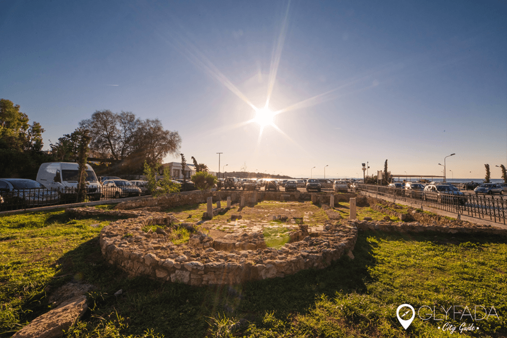 The remains of an early Glyfada's Christian Basilic era, were accidentally discovered in 1927 during an excavation of graves from N.Kyparissis and researched by Anastasios Orlando. They are maintained visible inside the fenced archaeological site located near the center "Asteria" between the coastal road (Vas. Georgiou B ') and the coast of a small bay which was the port of Aixoni, They have been revealed other interesting relics near the beach of the late Roman and Byzantine period, showing that in this region there was still an important settlement during the Christian era.